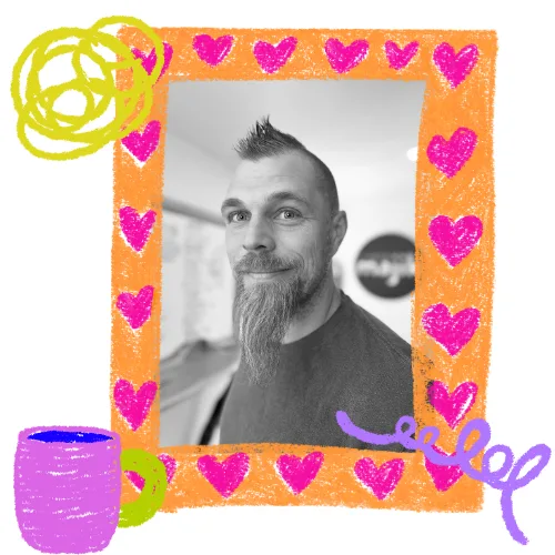 We’re also unschoolers, raising our son in creative, unorthodox, family-centered ways. Not perfect. Just intentional (and joyful). Our kiddo has been a creative director in our biz since day one, and has co-written 23 stories and 30+ comedy commercials (so far).